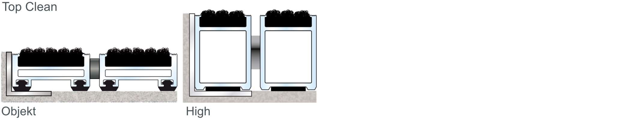 Für die Top Clean TREND Matte mit den Höhen 12 und 17 mm bieten wir ein Anlaufprofil an. Somit kann auf eine Verlegung in einer Bodenaussparung verzichtet werden.