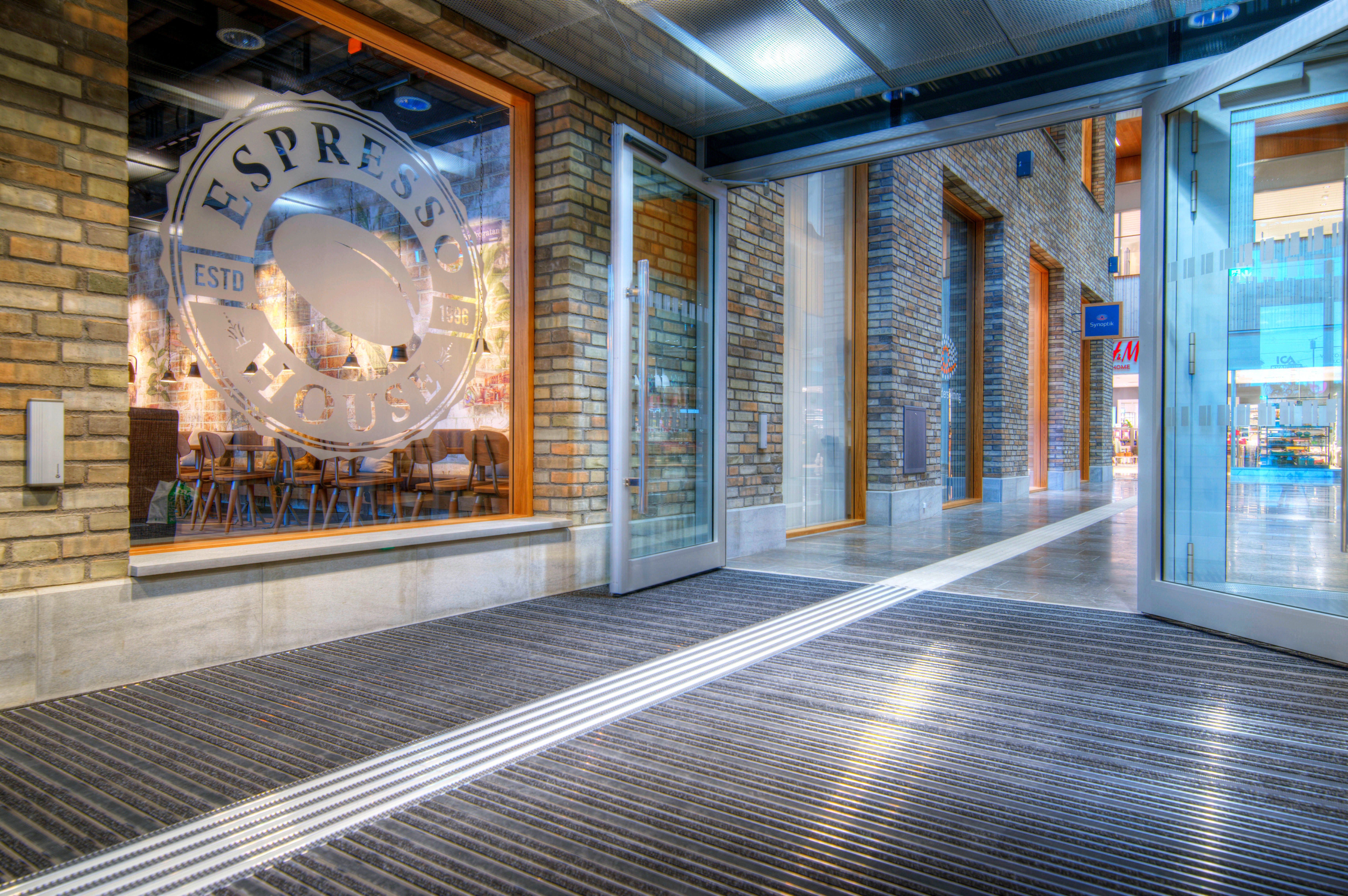 Einsatz in Eingangsbereichen mit starkem Personenverkehr. Geeignet zum Befahren mit zum Beispiel Einkaufswägen in Supermärkten oder Gepäck Trolleys an Flughäfen.