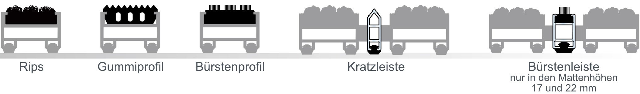 Verschiedene Profilhöhen und Profilabstände, unterschiedliche Farben und Beläge bieten Ihnen die Möglichkeit, jeden Eingangsbereich individuell und nach Ihren Anforderungen zu gestalten.